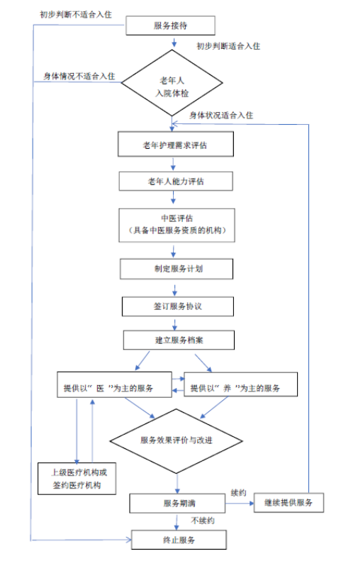 (1)医养结合机构可与周边综合医院、中医医院建立签约合作关系,开设转诊绿色通道,明确服务流程,确保实现及时有效转诊。
