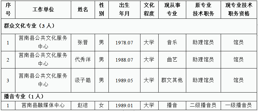 2022年度群众文化播音专业职务资格中级评审委员会评审通过人员名单(共4人)