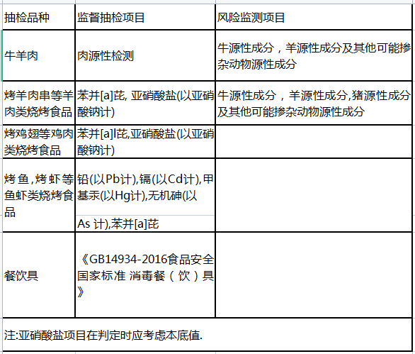 五、火锅烧烤餐饮食品及餐饮具抽检监测品种、项目及批次安排
