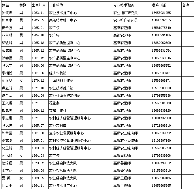 附件:莒南县农业农村局农业技术专家库人员花名册