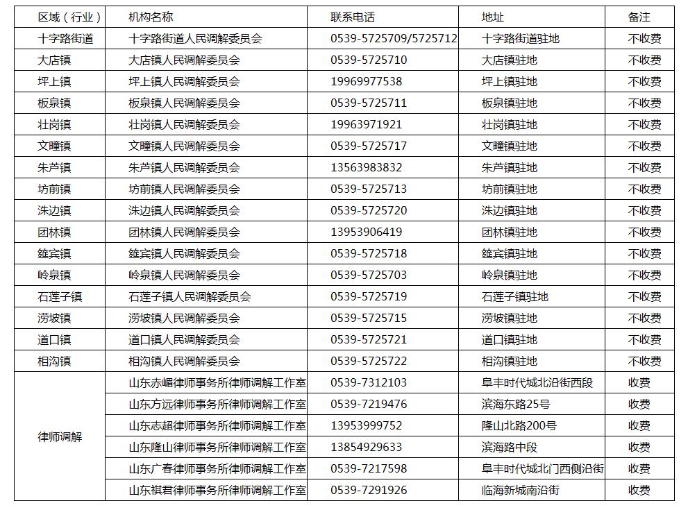莒南县服务中小微企业调解组织联系电话