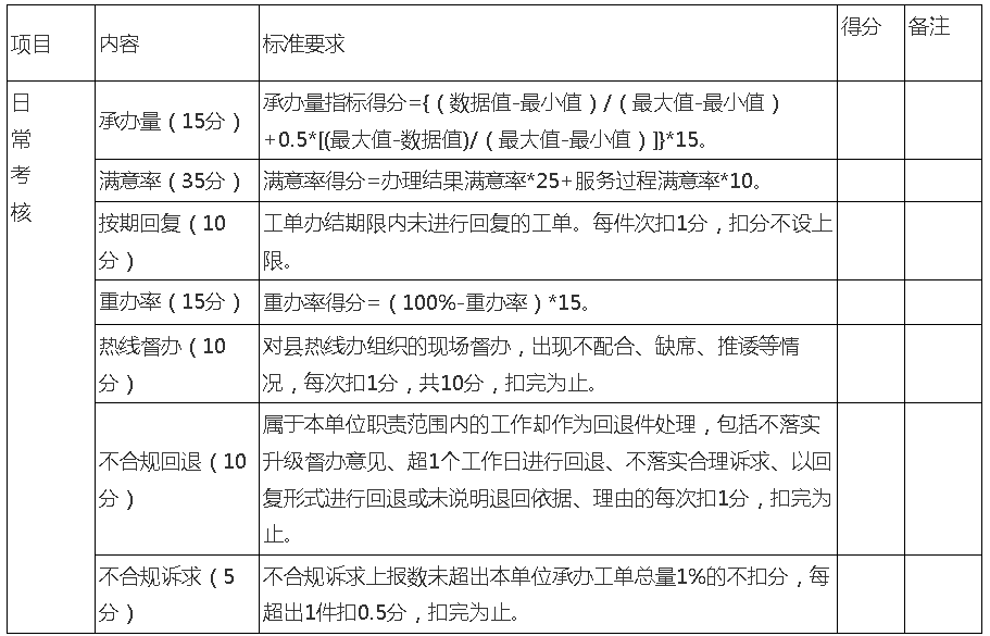 县直部门单位热线工作日常考核细则