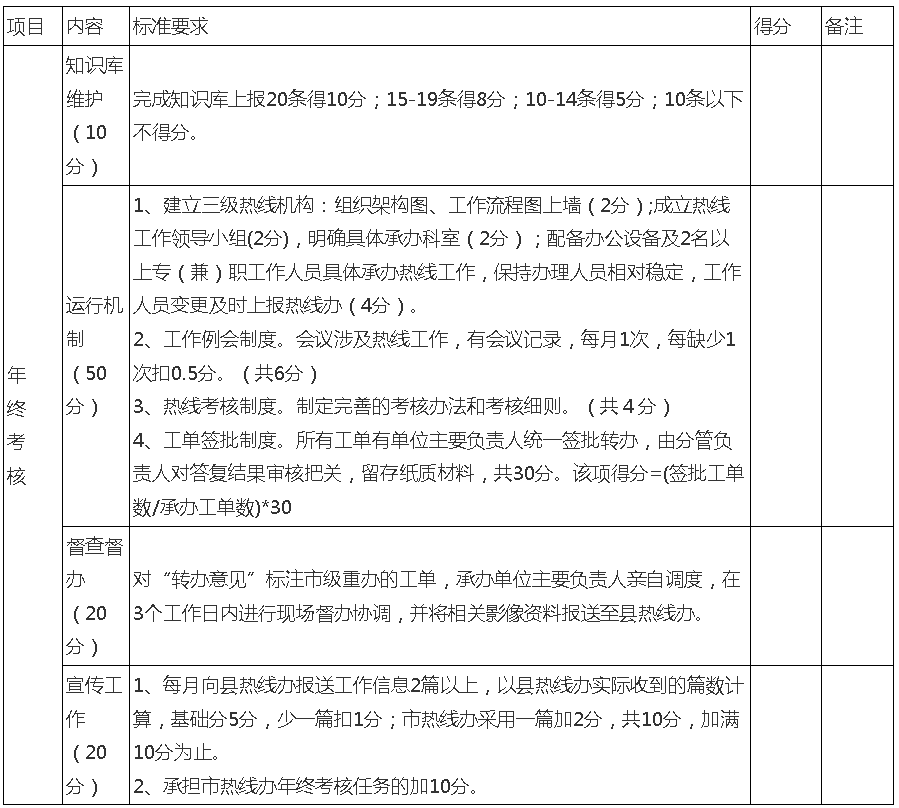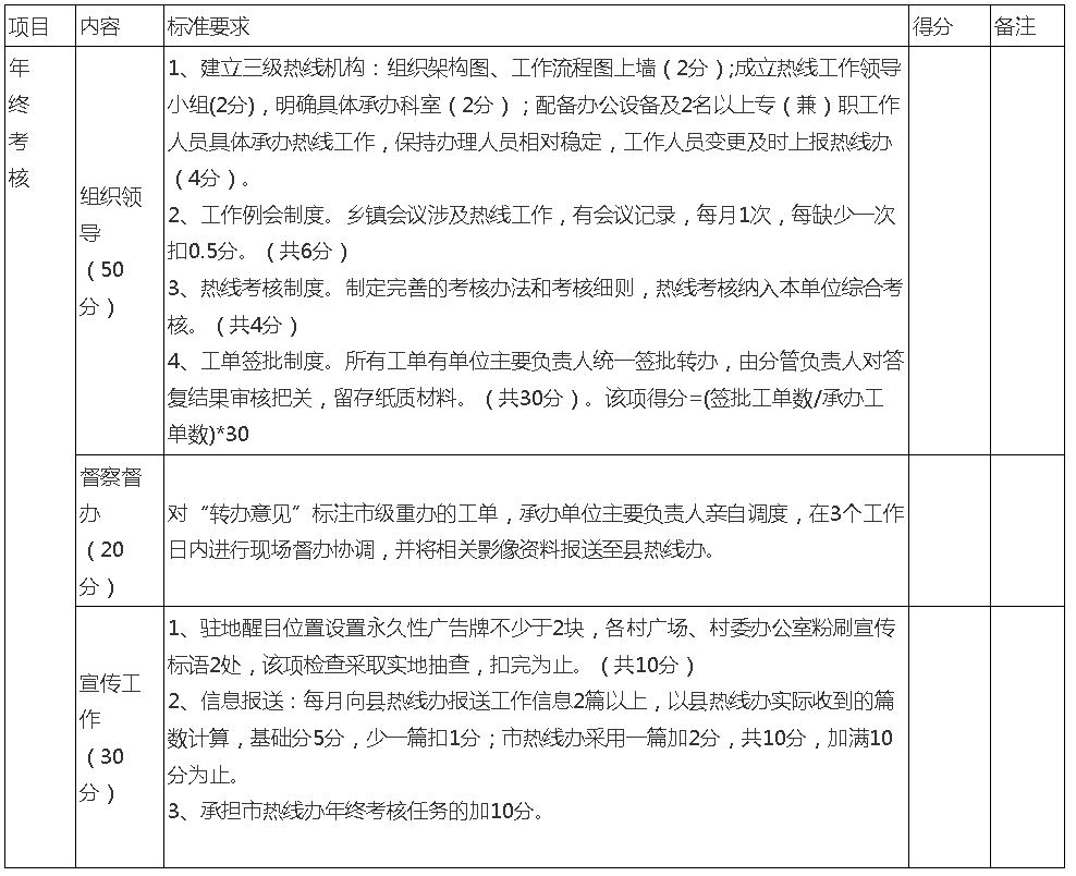 4. 县直部门、单位热线工作年终考核细则