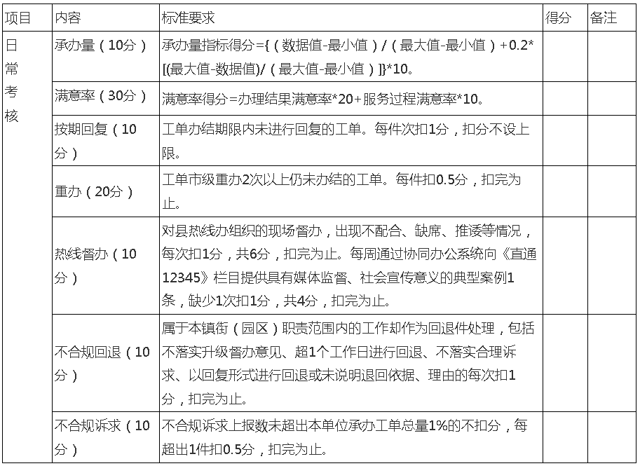 镇街(园区)热线工作日常考核细则