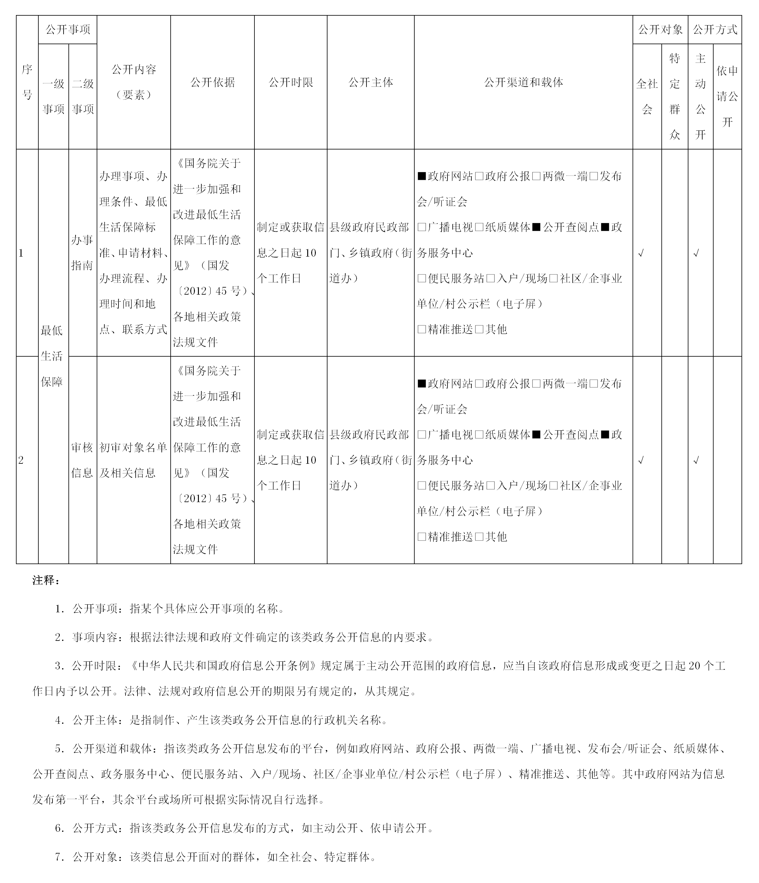 2020年8月底前,对照国务院部门制定的26个试点领域标准指引,结合各权责清单和公共服务事项清单,编制完成县政府、各镇街政府(办事处)政务公开事项标准目录,经县政府审核同意后,在县级政府门户网站公开发布。