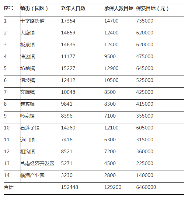 2018年度各镇街(园区)银龄安康工程任务分配表