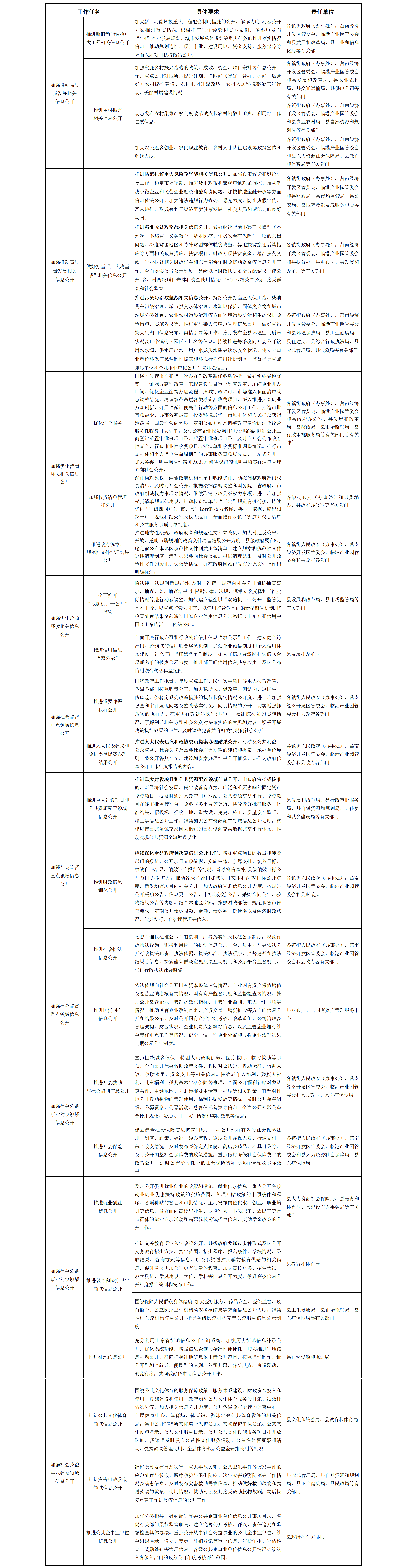 2019年莒南县重点领域信息公开主要任务分解表