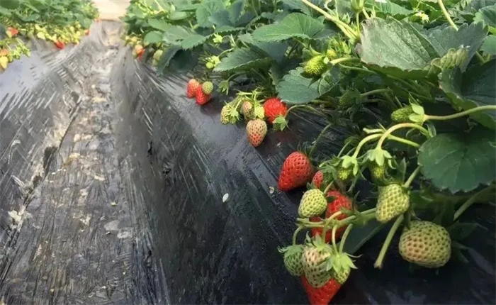 三是加强肥水管理。及时清理沟系,防止水渍灾害发生。加强水肥管理,花、果期保证每周浇一次水,隔周施用一次水溶肥,浇水时间集中在上午9点至10点。在果实膨大期和采摘期应该追肥,增加草莓的抗逆性。及时清除掉植株上的老叶、残叶、病叶以及抽发的无效匍匐茎,减少养分无效消耗。