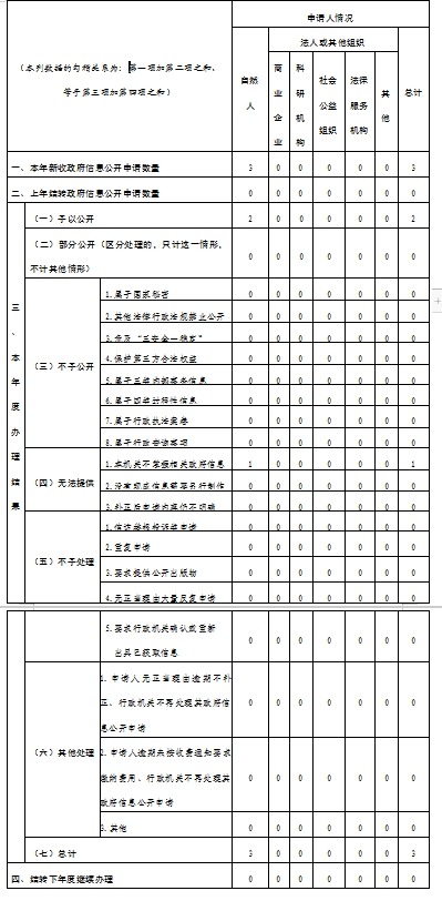 三、收到和处理政府信息公开申请情况