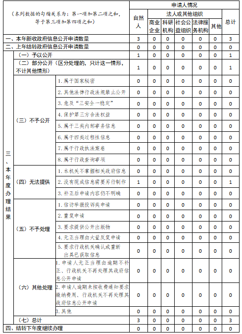 三、收到和处理政府信息公开申请情况统计表