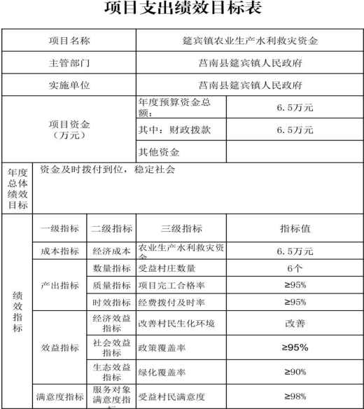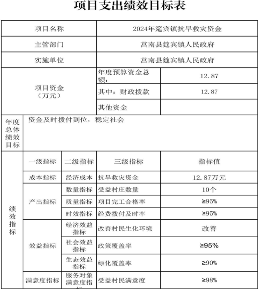 绩效目标管理,涉及预算项目支出7个,预算资金1,014.37万元,其中财政拨款1,014.37万元。拟对2024年筵宾镇抗旱资金、筵宾镇农业生产水利救灾、2024年省级财政衔接推进乡村振兴补助资金(省派第一书记)、2024年筵宾镇第三批财政衔接推进乡村振兴补助资金、2024年筵宾镇革命老区项目(老子峪村道路硬化及配套工程)、2024年筵宾镇革命老区项目(筵宾村会议室工程)、2025年筵宾镇专项资金等7个项目开展部门重点绩效评价,涉及预算资金1,014.37万元,其中财政拨款1,014.37万元。根据以前年度绩效评价