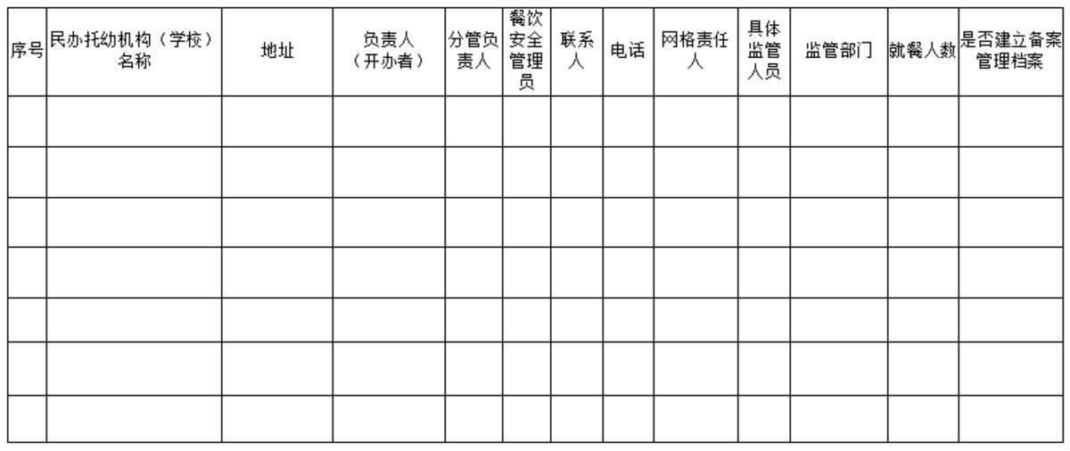 第十一条每年5月1日前各监管网格对辖区内备案托幼机构统计报县局备案(见附件)。