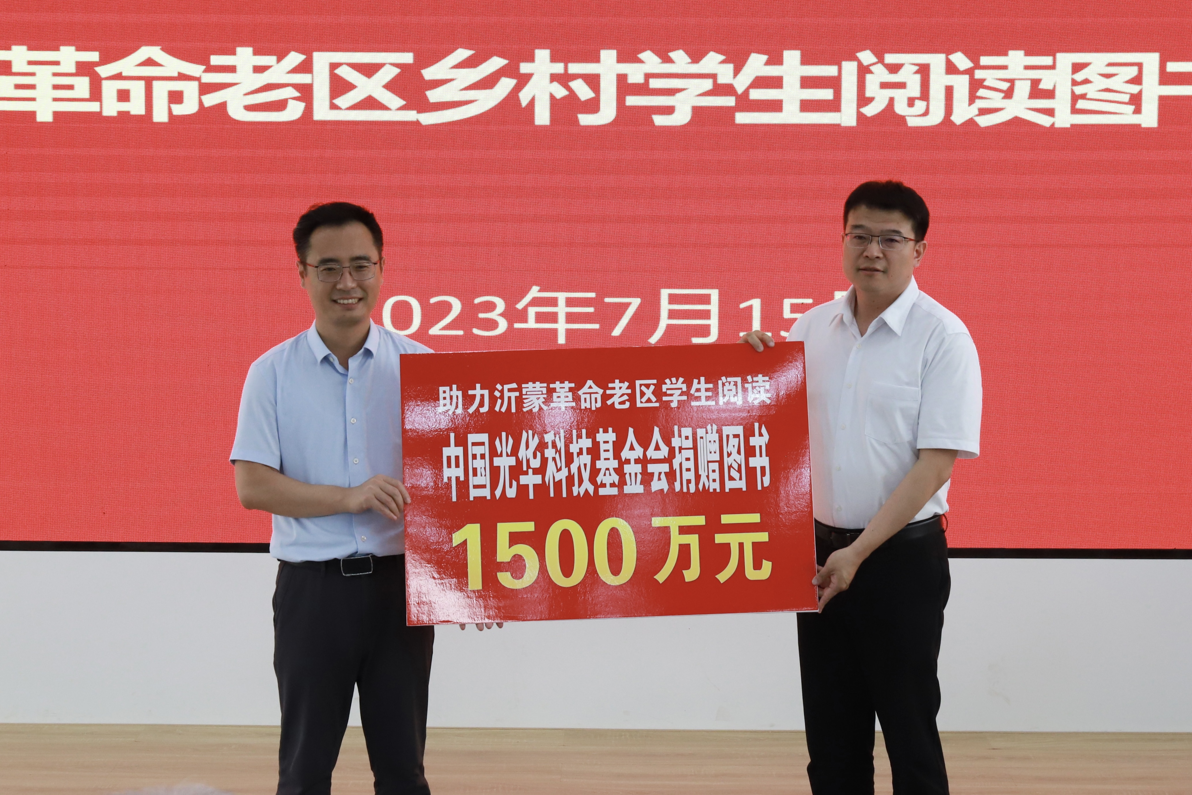 在随后举行的捐赠仪式上,厉伟对中国光华科技基金会的爱心捐赠表示衷心的感谢。他说,莒南县将以这次捐书活动为契机,把捐赠的书籍管理好、运用好,发挥其最大作用和价值。要广泛开展乡村阅读活动,用读书浸润心灵,让书香充盈人生。要大力发展文化教育事业,以文化振兴助力乡村全面振兴,加快建设“宜居宜业宜游”现代化莒南,为中国式现代化贡献莒南力量。