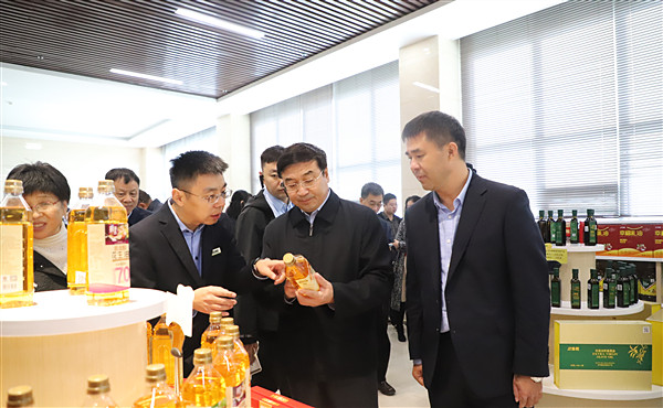 在山东兴泉油脂有限公司,观摩组先后参观企业特香小榨花生油生产线、植物油精炼车间、浓香花生油生产线、成品油灌装车间以及研发中心等现场,详细了解了企业生产模式、研发技术与水平、独特的兴泉企业文化体系等情况,鼓励企业不断扩大自身优势,继续实施“中国好粮油”行动计划、打造“齐鲁粮油”品牌,发展壮大集体经济,振兴粮油产业发展。