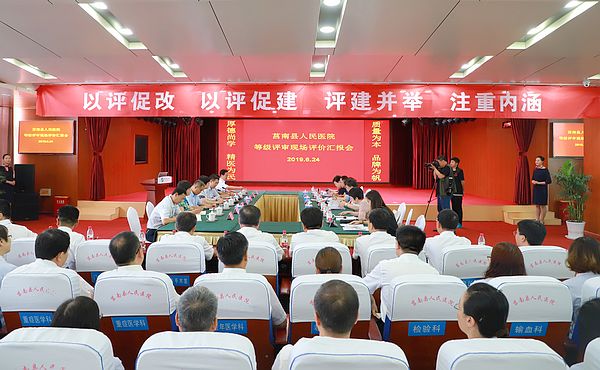 6月25日至26日,由省卫健委组织综合管理、医疗、护理、药事、院感等七个专业评审组对莒南县人民医院三级乙等医院复审进行现场评价。6月24日, 莒南县人民医院等级评审现场评价汇报会召开,临沂市卫健委党组成员、中医药管理局副局长刘晓玲,县委副书记、县长郇恒赛,县政府副县长徐淑波以及省卫健委评审专家组全体成员参加。