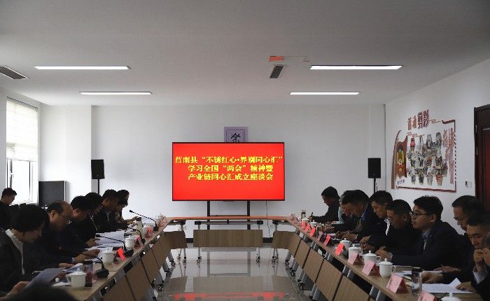 3月30日,莒南县“不锈红心•界别同心汇”学习全国两会精神暨产业链同心汇成立座谈会举行。市政协副主席、党组成员黄杰,县委书记、临沂临港经济开发区党工委书记王立军,县政协主席、党组书记赵洁参加。