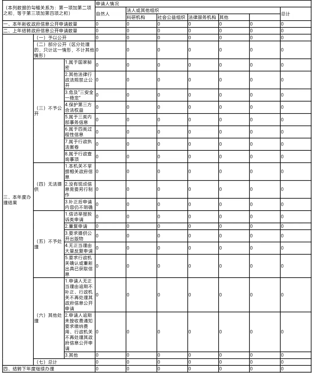 三、收到和处理政府信息公开申请情况