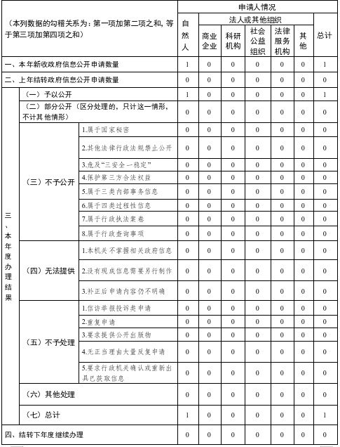 三、收到和处理政府信息公开申请情况