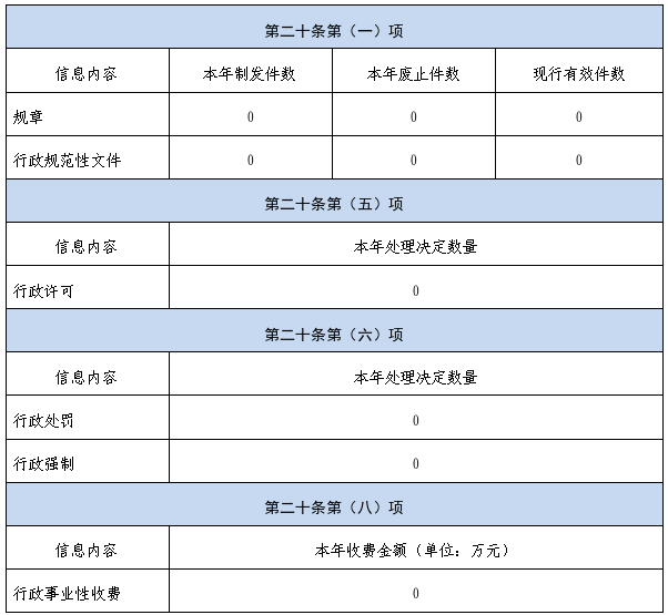 (一)依申请公开信息处理费收费情况。按照《国务院办公厅关于印发〈政府信息公开信息处理费管理办法〉的通知》规定的按件、按量收费标准,本年度没有产生信息公开处理费。