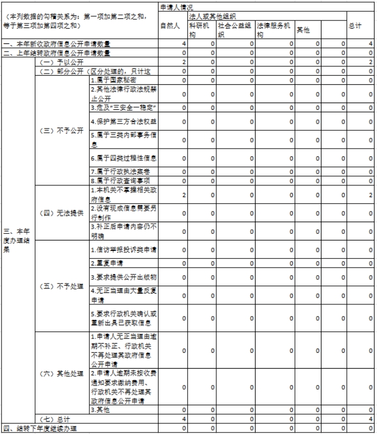 三、收到和处理政府信息公开申请情况