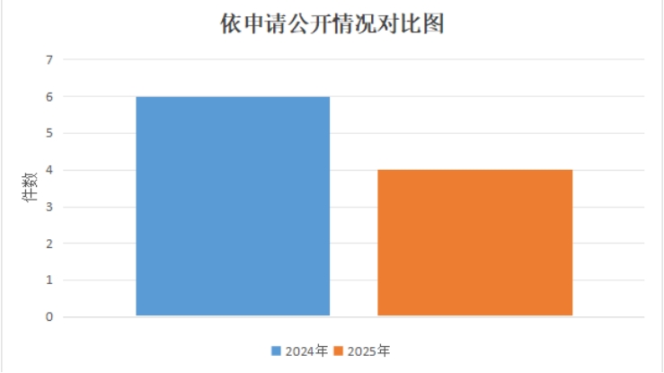 (二)依申请公开工作方面。2025年度,我局共收到依申请公开4件,其中自然人4件,无企业申请,较2024年减少2件。从答复情况来看,4件全部予以公开,占比100%;按涉及领域来看,主要涉及建设工程、精神文化等内容。在办理过程中,我局严格规范依申请公开工作流程,确保申请渠道畅通。