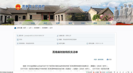 打印根据《中华人民共和国政府信息公开条例》和市县关于政府信息公开的有关规定,结合财政工作实际,编制莒南县财政局2020年政府信息公开工作年度报告。