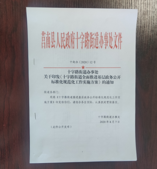 为进一步规范基层政务公开标准化规范化工作,切实提升基层治理能力。莒南县十字路街道严格按照《国务院办公厅关于全面推进基层政务公开标准化规范化工作的指导意见》(国办发〔2019〕54号)等文件要求,以基层政务公开标准化规范化工作为依托,围绕涉及本级职能权限的18个领域,全面梳理公开事项,细化公开内容,切实提升基层政务公开的针对性、时效性。本级政务公开标准目录已于10月底完成编制,于11月底完成第三轮审核梳理工作。