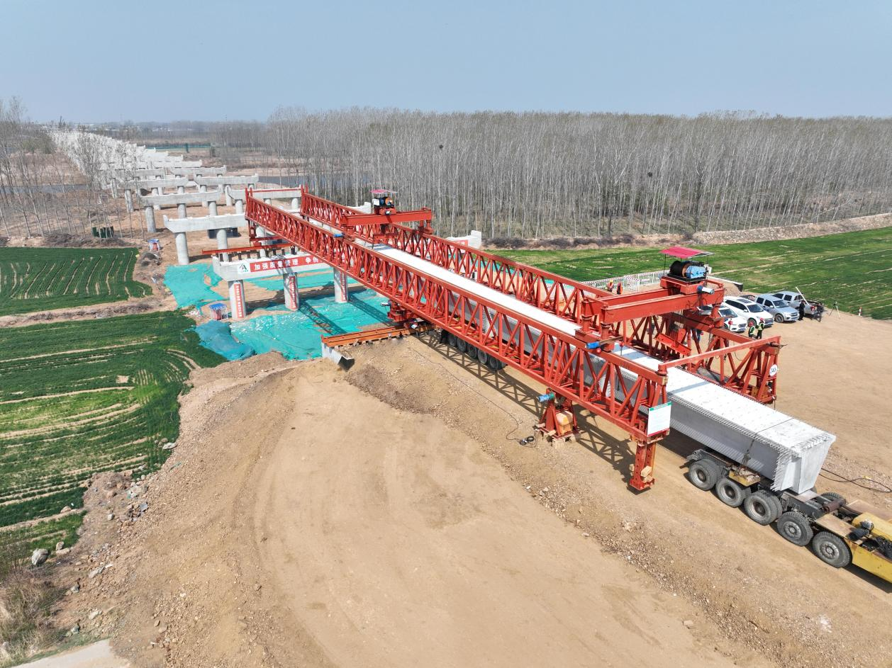 3月31日,G518项目关键控制性工程——沭河特大桥建设取得重大进展,首片40米预制箱梁顺利完成架设,标志着大桥正式进入桥梁架设施工阶段,为项目主线贯通奠定了坚实基础。