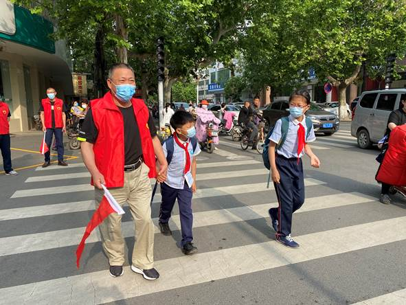 6月1日上午7时,志愿者们提前来到校门口,多点位分工开展志愿服务。他们现场引导学生保持安全距离,车流人流中,志愿者配合交警疏导交通,护送孩子过斑马线,协助学校有序为学生报到注册,全力确保学生开学复课安全有序。