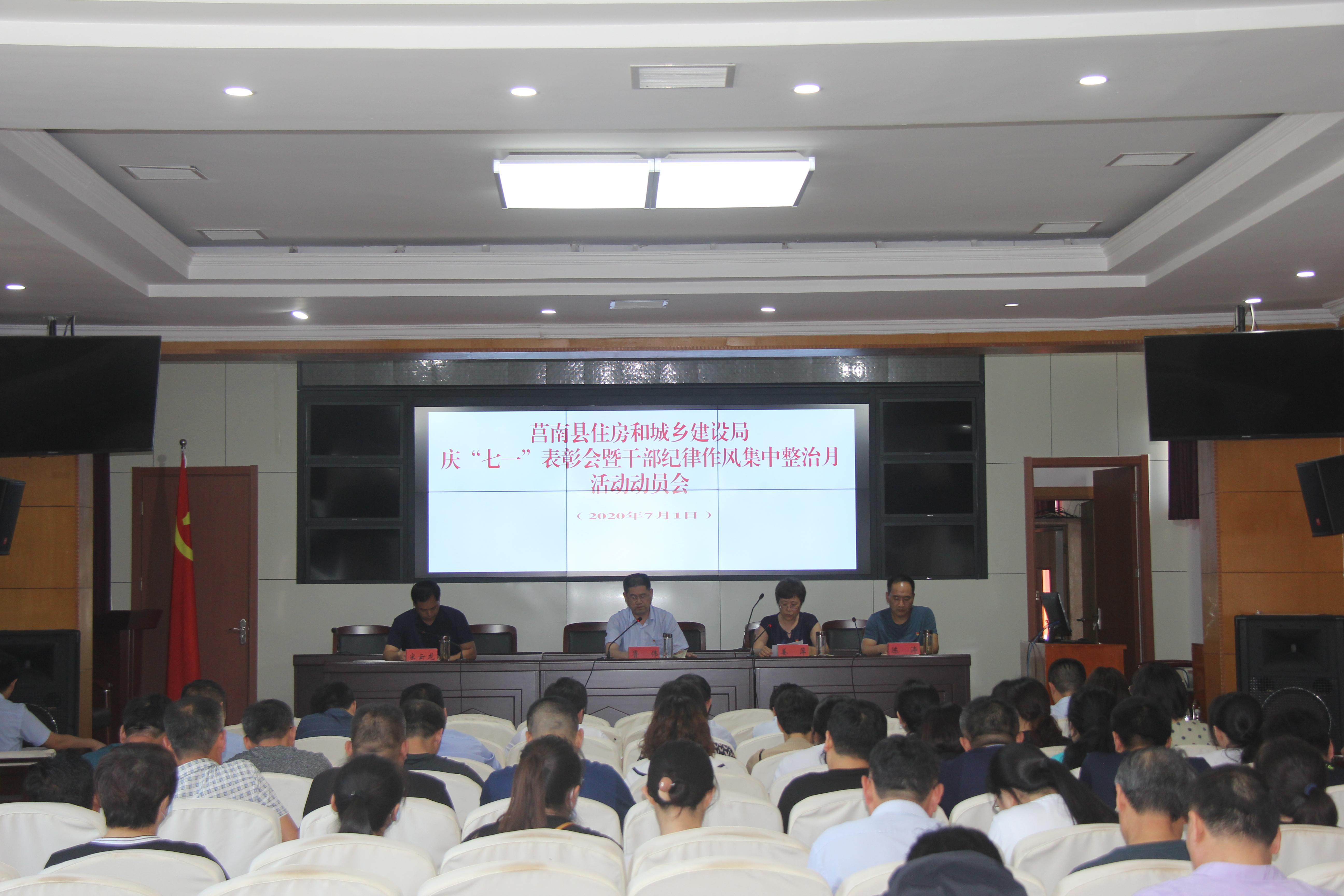 7月1日,县住建局召开了庆“七一”表彰会暨干部纪律作风集中整治月活动动员会。局领导班子成员,局机关全体人员,局属单位主要负责人,机关党委各党支部书记参加会议。县住建局局长鲁伟主持会议并讲话。