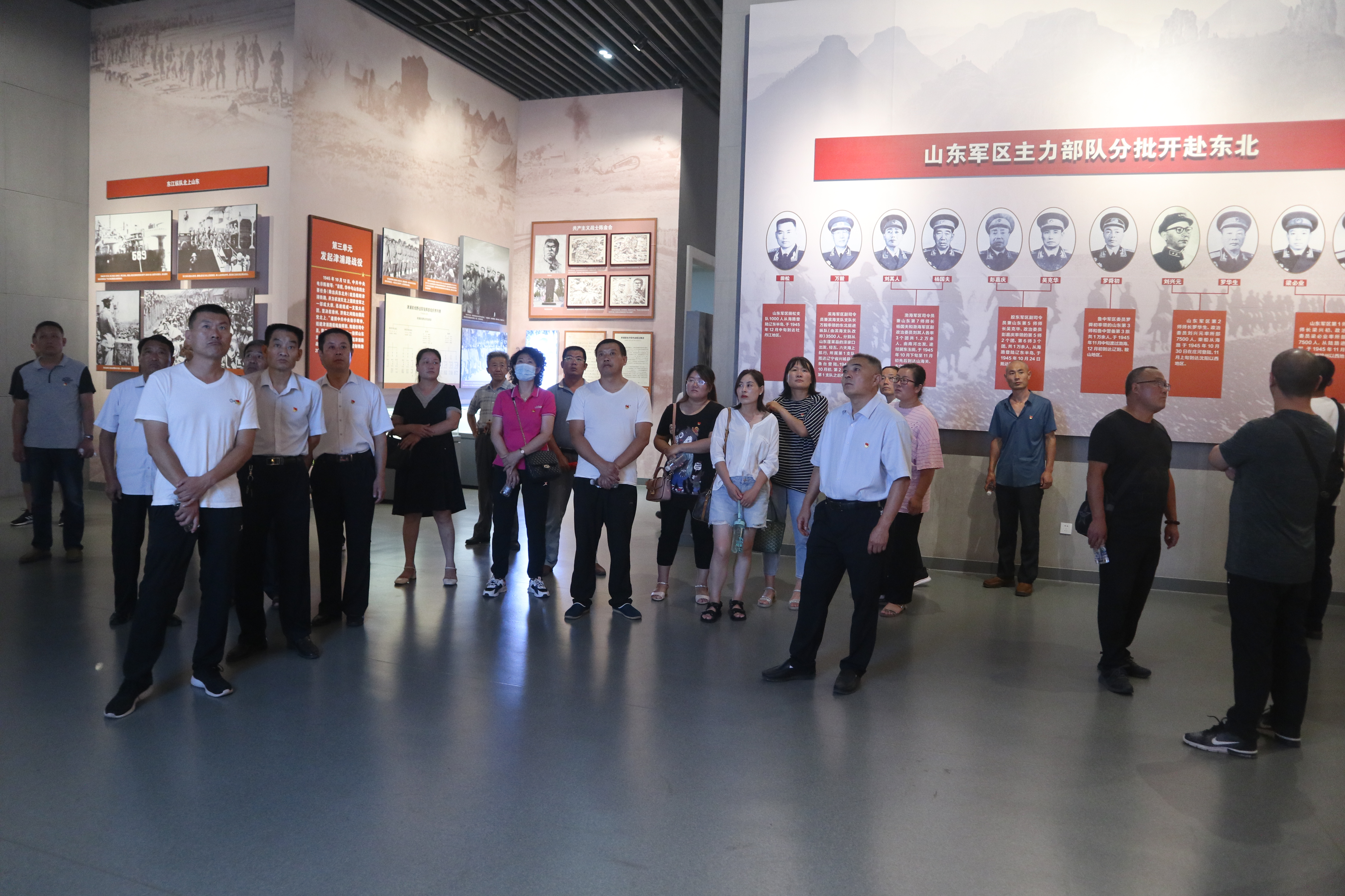 全体党员怀着无比崇敬的心情参观了华东野战军纪念馆中“向北发展 向南防御”“厉兵秣马全面备战”“奋起自卫 初露锋芒”“华野诞生 功著沂蒙”等八个部分。同志们边走边看、边思边议,深刻领会了“爱党爱军、开拓奋进、艰苦创业、无私奉献”的沂蒙精神丰富内涵,纷纷被革命前辈不怕辛苦、不畏艰辛、无畏牺牲的精神所感动,被老区人民用乳汁救伤员,最后一粒米当军粮、最后一块布做军装、最后一个儿子送战场的军民鱼水情深所震撼。
