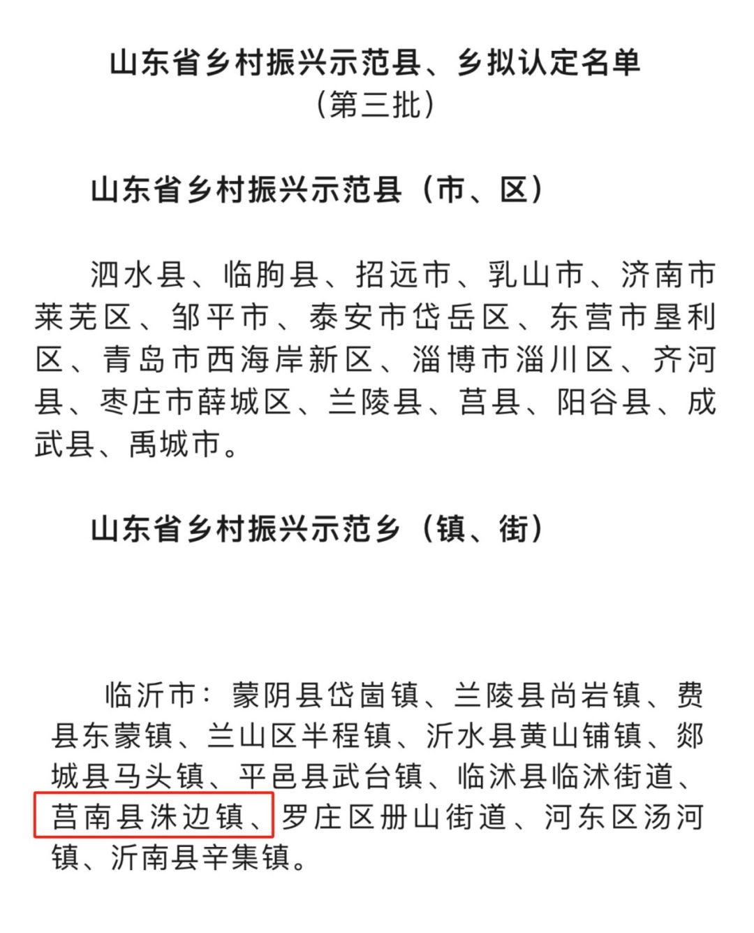 打印近日,省发展改革委联合省有关部门,通过严格评估,拟认定第三批山东省乡村振兴示范县(市、区)17个、示范乡(镇、街)126个、示范村(社区)1273个。其中,洙边镇成功入选山东省第三批乡村振兴示范镇!