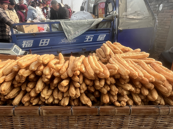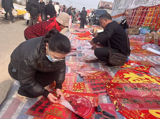 眼下,各式各样的年画和对联,看那吉祥如意的毛笔字,挥毫泼墨、笔走龙蛇间,一笔一划都是对来年的期盼。大红的刺绣小棉袄,红底绣花的对襟褂子,各色鲜艳的布料,以红色为主调的服装摊也带来了浓浓的年集味道。过年少不了干货零嘴,在年集上你能遇见种类最全、最醇香的干果和果脯,满足群众对于干果的一切要求。年夜饭更不能没有大口吃肉的环节,现场屠宰牛羊的摊位上,你能找到种类多、品质高的新鲜牛羊肉,三五成群,在挑选着自己最中意位置的新鲜肉。